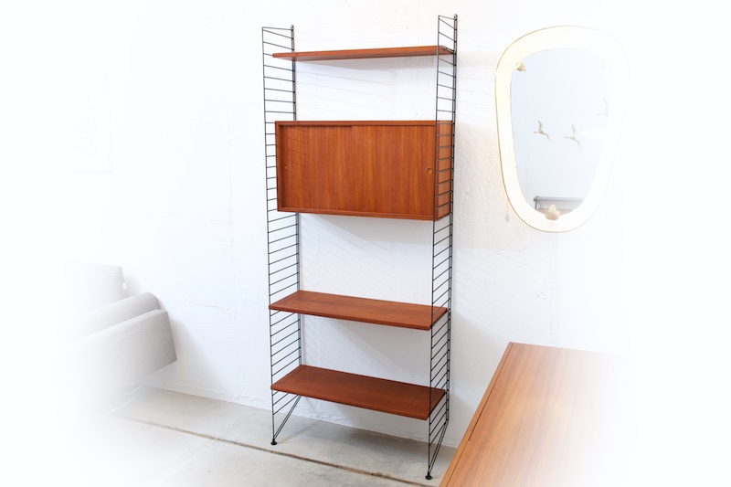 Note: Can be supplemented and extended as required with wall or floor ladders, as well as shelves with different depths and carcase elements. BLISS offers a large selection of restored original STRING teak parts from the 50s/60s.