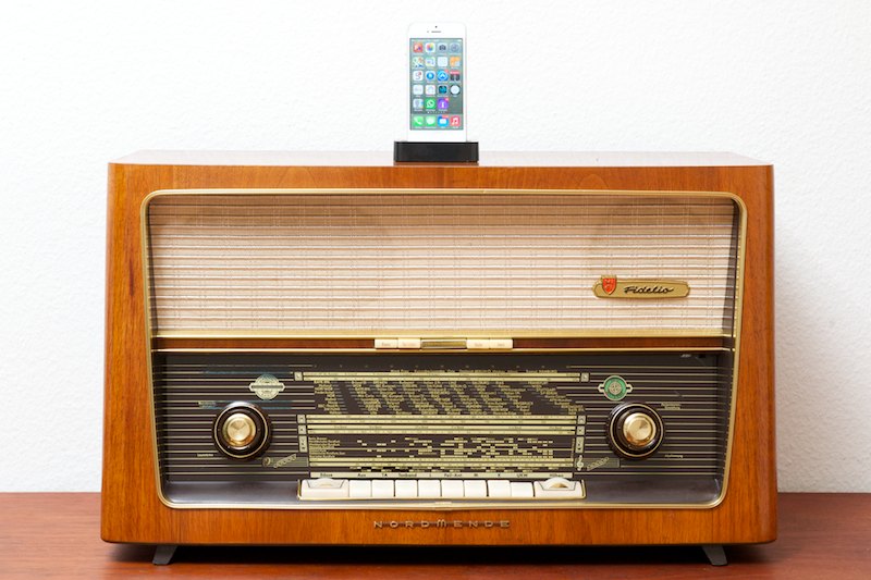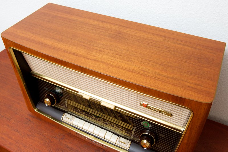 A luxury device from the 50s. Note: Thanks to the modern audio connection from BLISS, all modern audio devices can be connected. By connecting a smartphone, you get a complete audio system. With apps like ShoutCast, you can choose the international radio station that plays your favorite music. With an Airport Express (Apple) you can send music from your computer directly to this beautiful, original audio device and enjoy your music in incomparably rich, warm sounds.