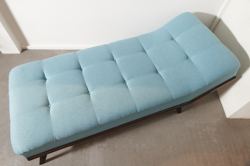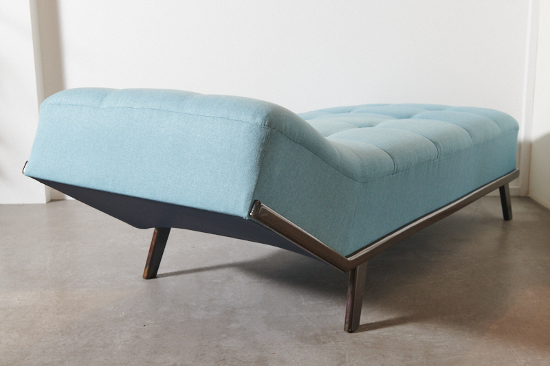 Completely refurbished: Recamiere / daybed / sofa DIE WOLKE, 1950s – the name lives up to its promise; you lie on it like on cloud nine. The elaborate spring core is the reason for the wonderfully comfortable lying and sitting feeling