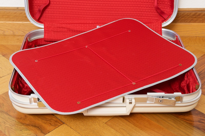 Description: Like new: Shell suitcase DELSEY Paris, 1970 – the feather-light, “indestructible”, royal suitcase, made in France, eggshell white shell, chrome-plated full metal locks (without key), aluminum frame, inside lined with red artificial silk, side bags, elastic straps, shirt insert, top condition!