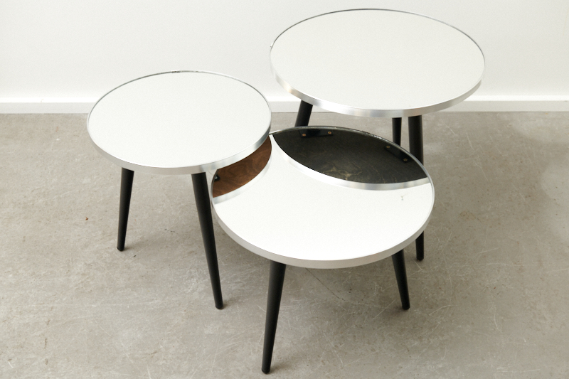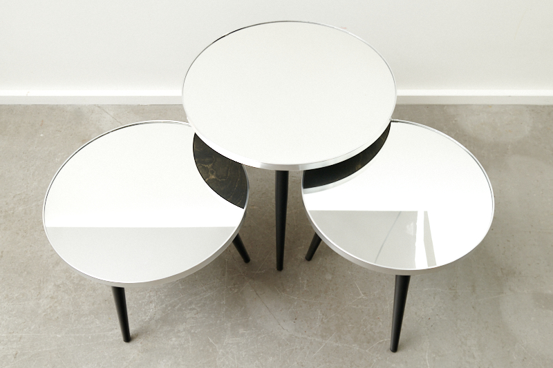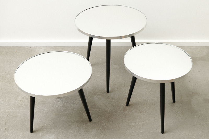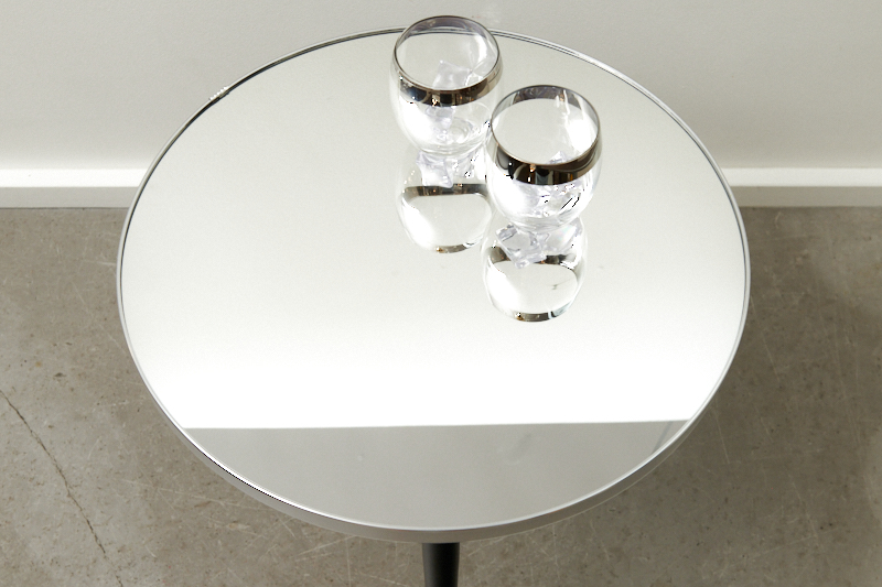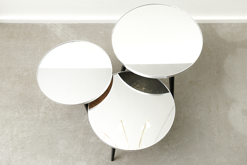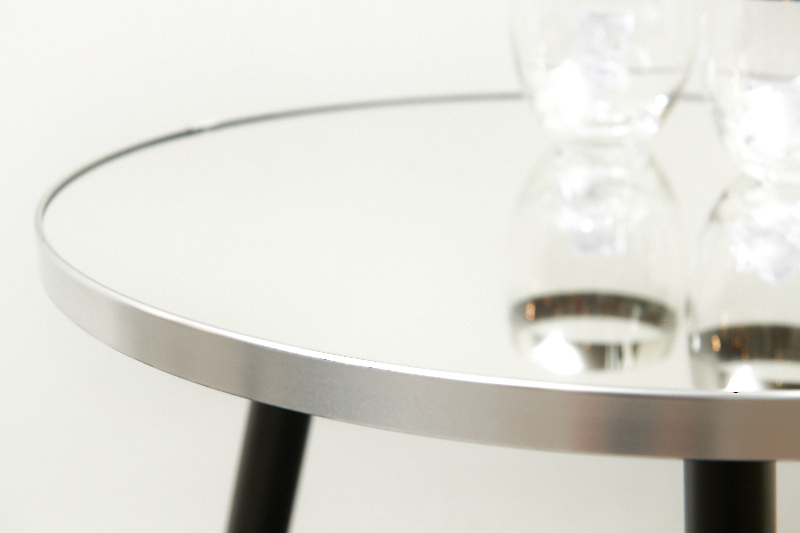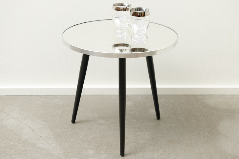 Description: BLISS STUDIO custom-made: Small table MIRROR SILVER EDGE I, crystal mirror on solid wood, silver edge, matt black metal legs, ideal as a bedside table, side table, coffee table or flower table Note: This table was only handmade 3 times, with 3 different diameters & heights. Especially beautiful in a set.