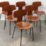6er-Set HAMMER T-CHAIR in Teak, Early Edition by Jacobsen/Fritz Hansen, 1950er (Sitzhöhe 45cm!)