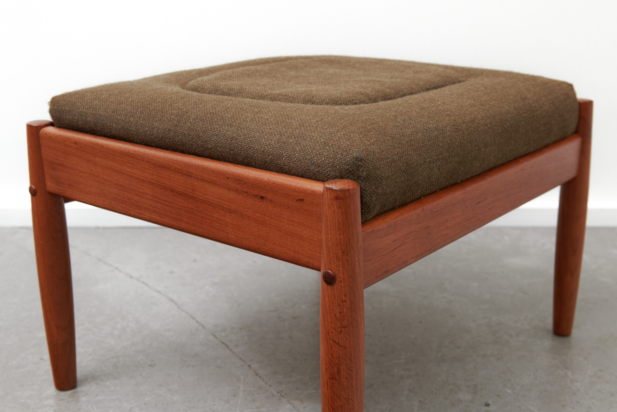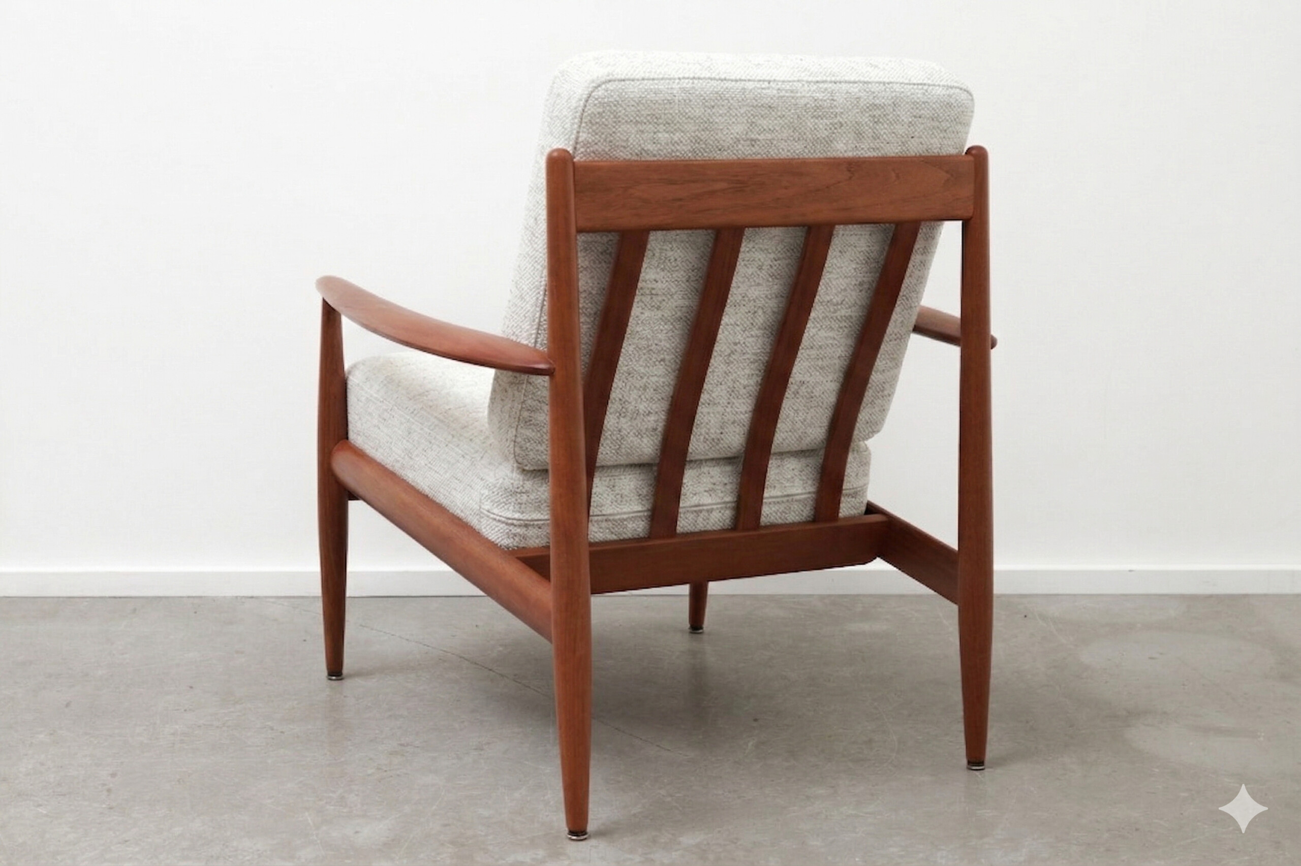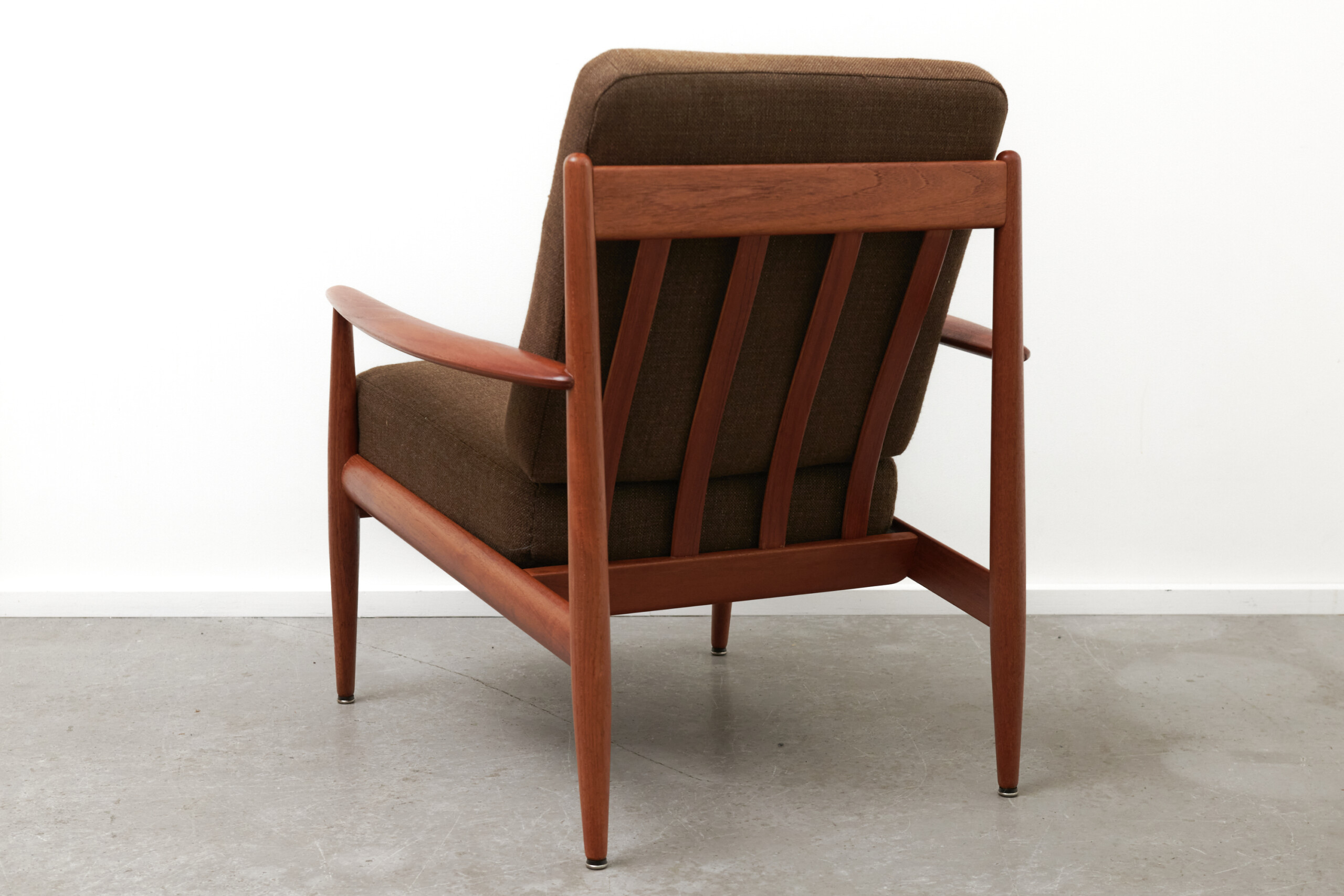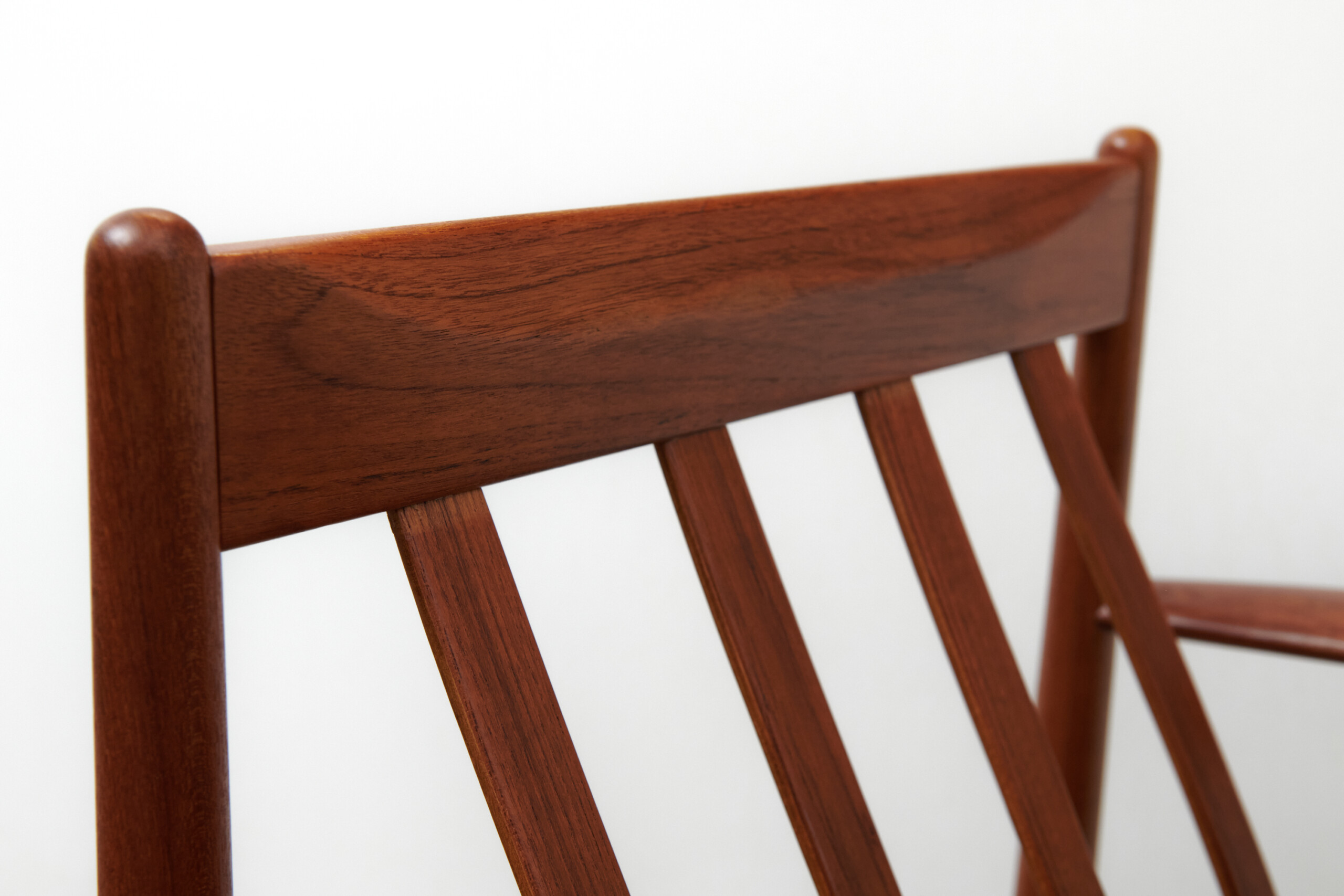 Aufwendig restauriert: Teak-Sessel 2er Set: Teak-Sessel mit Ottoman GRETE JALK, 1950er – FREIE STOFFWAHL, Design: Grete Jalk, Produktion: France & Son, Made in Denmark, 1950er, mehrfach geöltes massives Teakholz mit wunderschöner Holzmaserung, inkl. des seltenen Ottomans mit einstellbarem Polsterwinkel für noch mehr Komfort, herrlich bequeme Stahlfederung mit neuer Wattierung, FREIE STOFFWAHL > Musterbücher liegen für Sie im Shop bereit