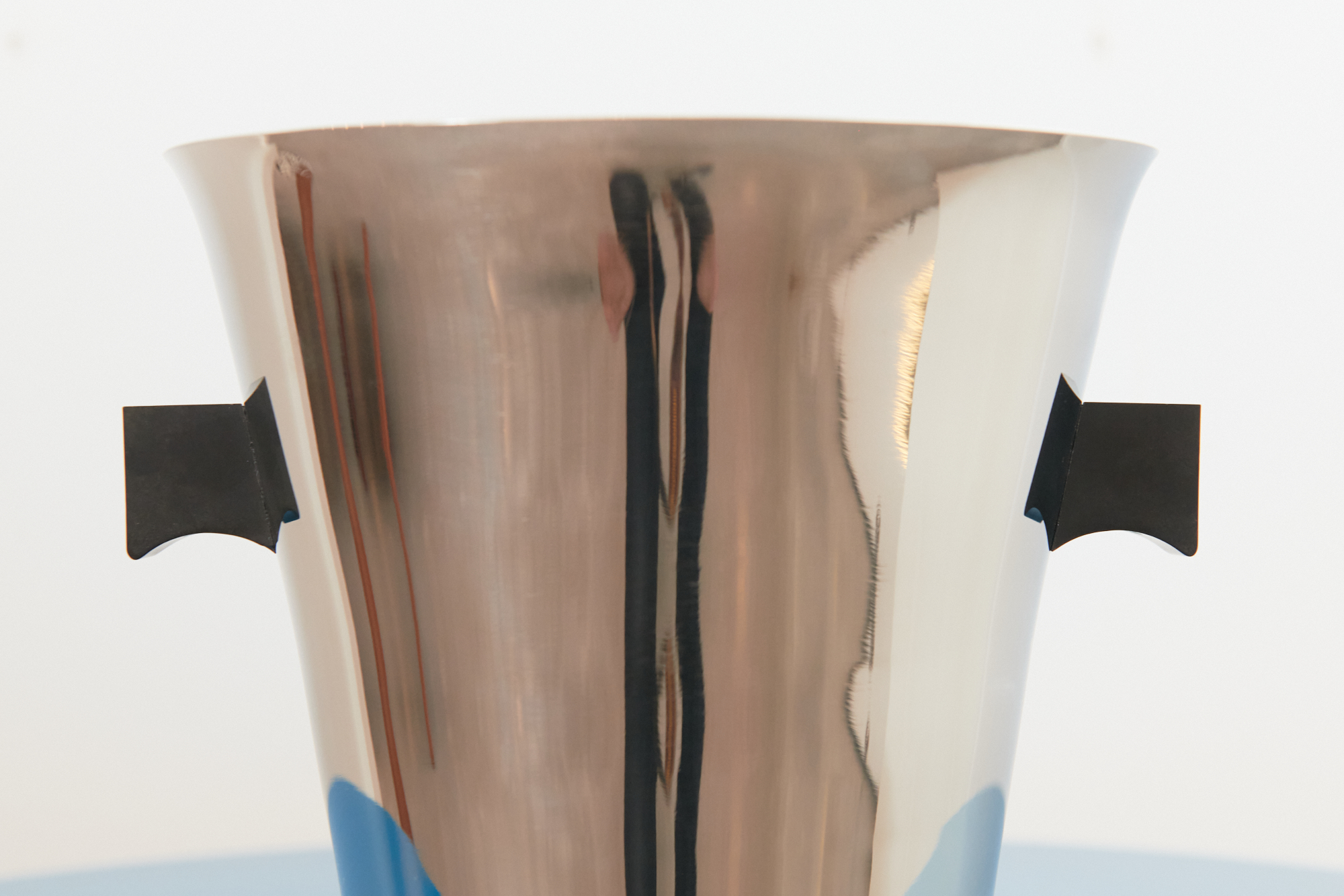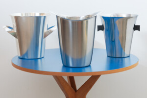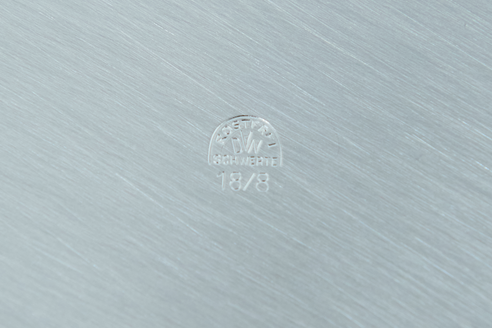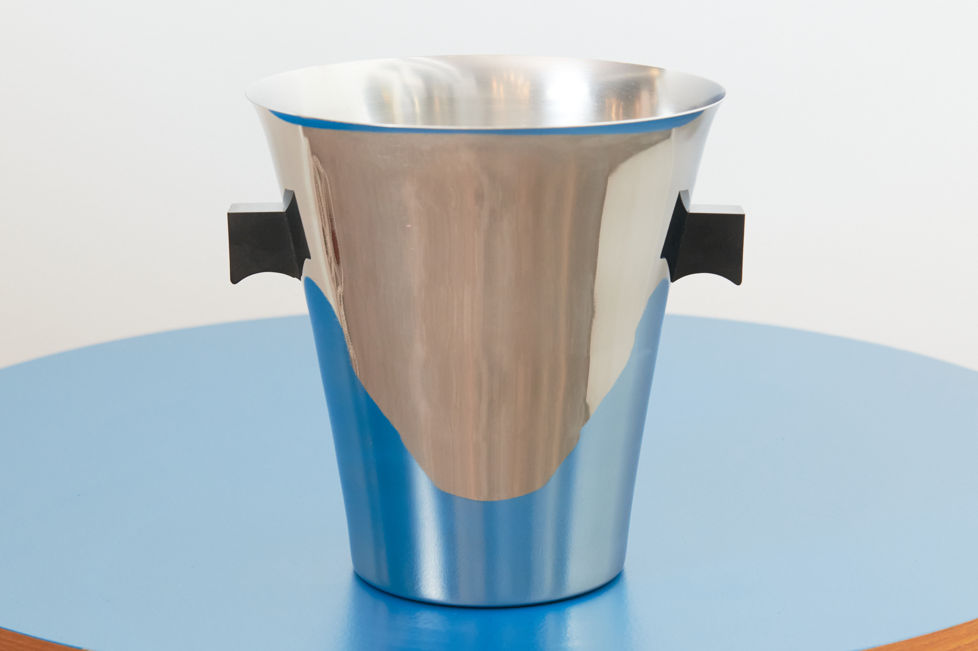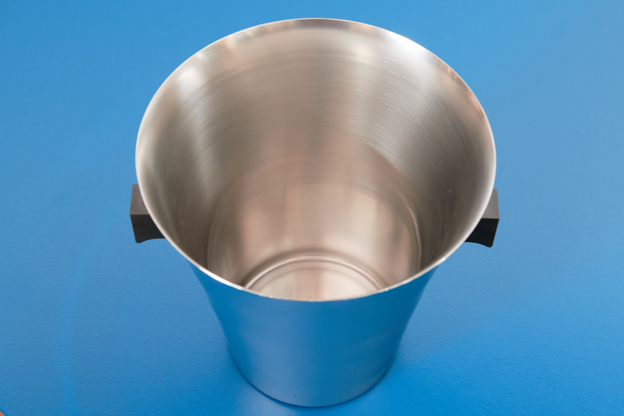 Polierter Champagner-/Sekt-Kühler/-Kübel DVN Schwerte, 1960er, Made in Germany, DVN / VDN in Schwerte: Vereinigte Deutsche Nickel-Werke (VDN), aus edlem Chromstahl; innen matt, aussen glänzend, gekennzeichnet, top Zustand!