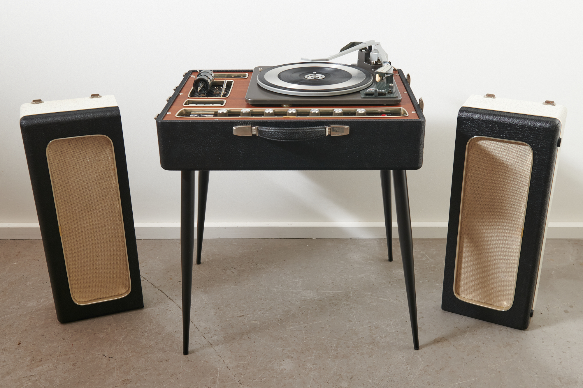Dies ist ein sehr stilvolles Stück Hi-Fi-Geschichte der 60er Jahre. Das Reader’s Digest Stereo 2003 mit dem Garrard 50 Mk II Plattenspieler war damals kein billiges Spielzeug, sondern eine ernsthafte Anlage für Musikliebhaber, die den Komfort eines Plattenwechslers schätzten. Ein seltenes Sammlerstück in sehr gutem, restauriertem und revidiertem Zustand!