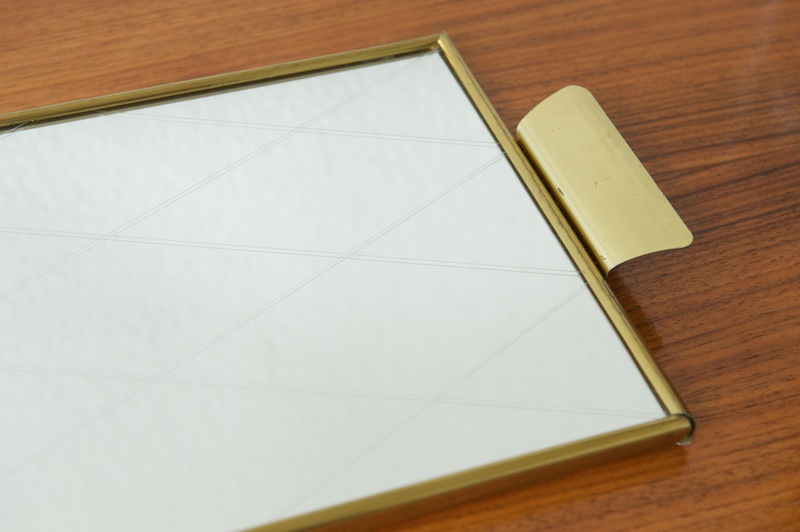 Restauriert: Spiegeltablett RAUTA, 1950er, Messingrahmen & -griffe, Kristallglasspiegel mit feinem Rauteschliff, Top Zustand!Gen