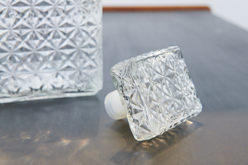Spirituosen-/Whisky-/Cognac-Karaffe LAUSITZ „MOSAIK“, (DDR), Kristallglas mit Diamantmuster, Glasverschluss