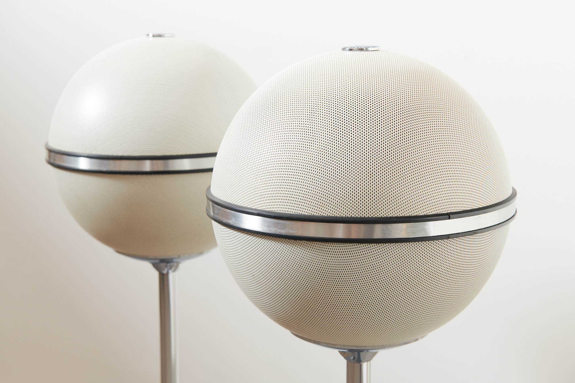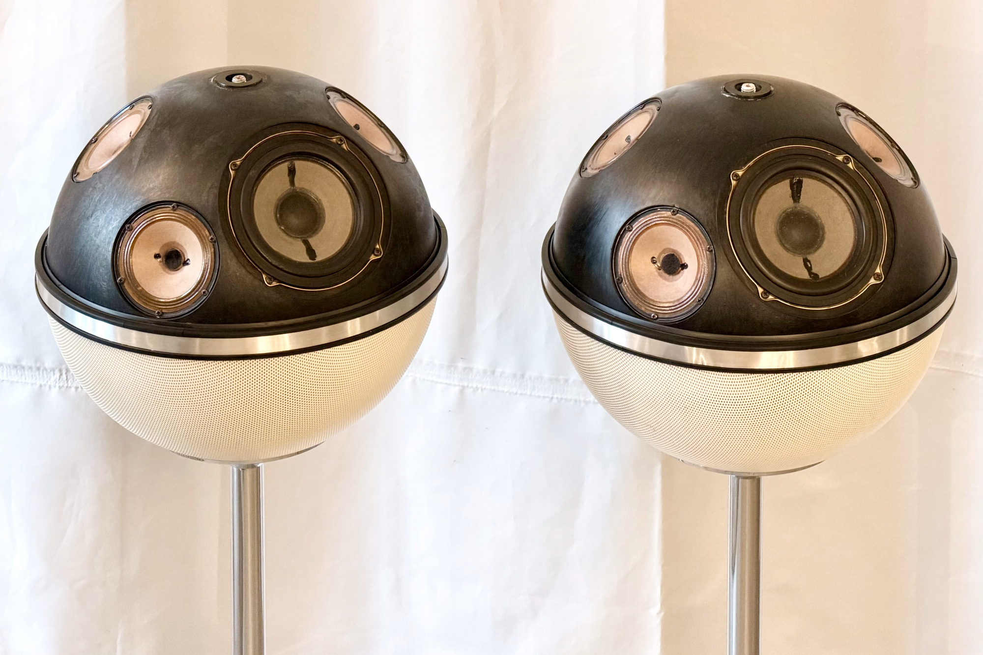 • Maximale Chassis-Power: Mit 12 Lautsprechern pro Kugel (4 Tieftöner und 8 Hochtöner) bietet dieses Modell eine physikalische Präsenz, die heute im Lautsprecherbau kaum noch zu finden ist. Es ist das ultimative Sammlerstück für Technik-Fans.