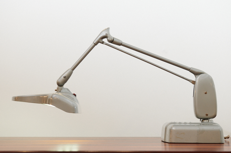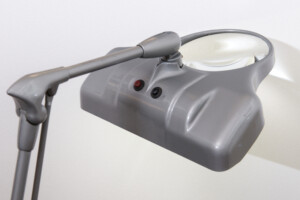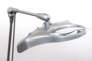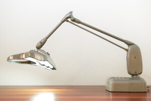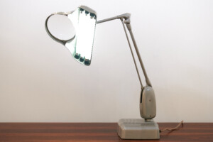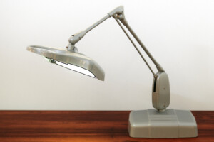 Restauriert: Lupenlampe Leuchtlupe MAGNIMAR by CARL MAHR, 1960er, Made in Germany, Design: CARL MAHR, komplett aus Metall, schwerer Fuss, leichtgängig, in jede Position zuverlässig verstellbar, trotz Funktionalität ist das zeittypische Design ausgezeichnet, grosse Lupe Ø 12cm, Druckschalter, inkl. Leuchtmittel in neutralweiss