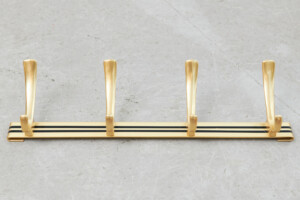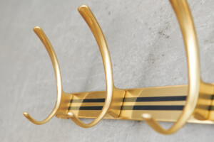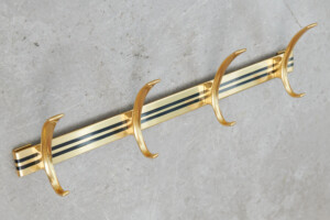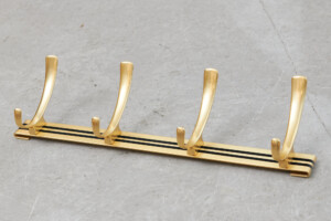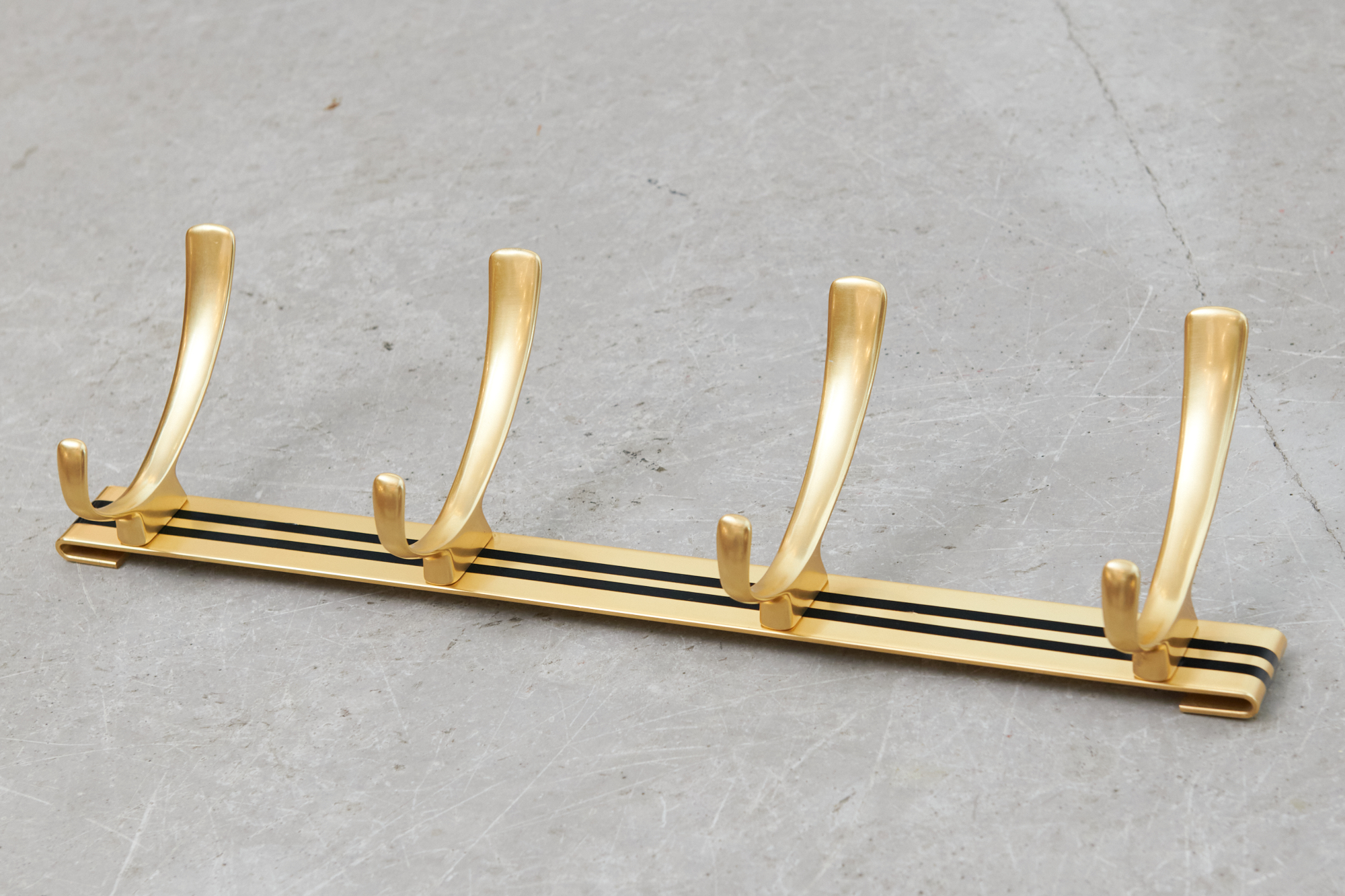 Restauriert: Wandgarderobe Hakenleiste GOLDSTRIP, 1950er, goldeloxiertes Aluminium mit 4 Haken, einfache Montage, sehr robust